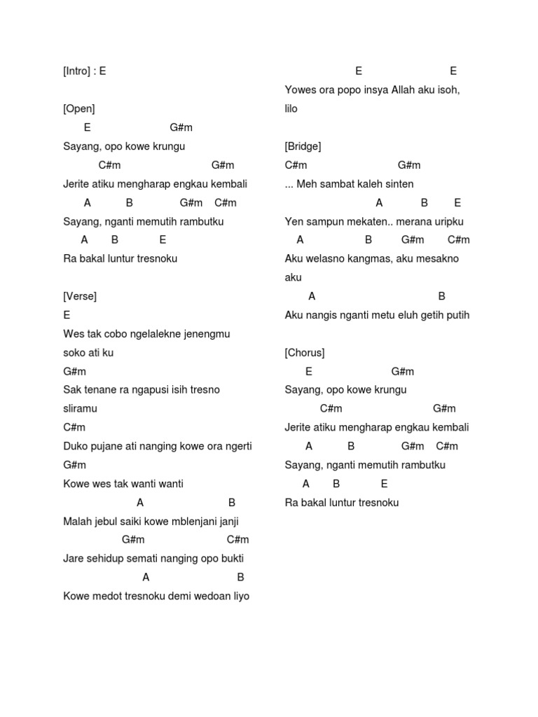 Anna Besso Nova Chord Lagu Sayang Opo Kowe Krungu