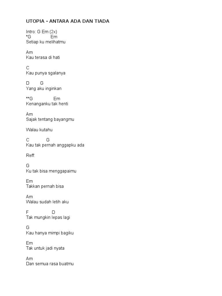 Lirik Lagu Utopia Antara Ada Dan Tiada Dan Chord Gitar