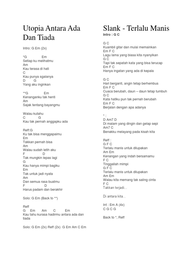 Lirik Dan Chord Gitar Utopia Antara Ada Dan Tiada