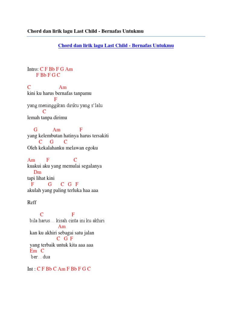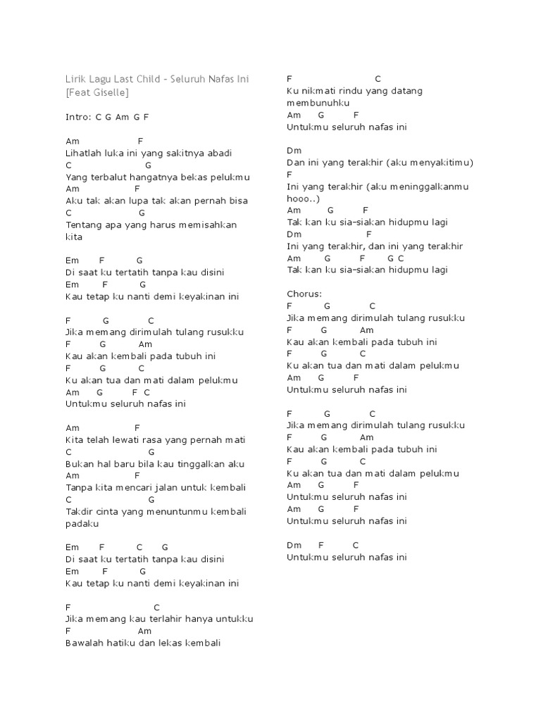 Chord Dan Lirik Lagu Last Child Bernafas Untukmu