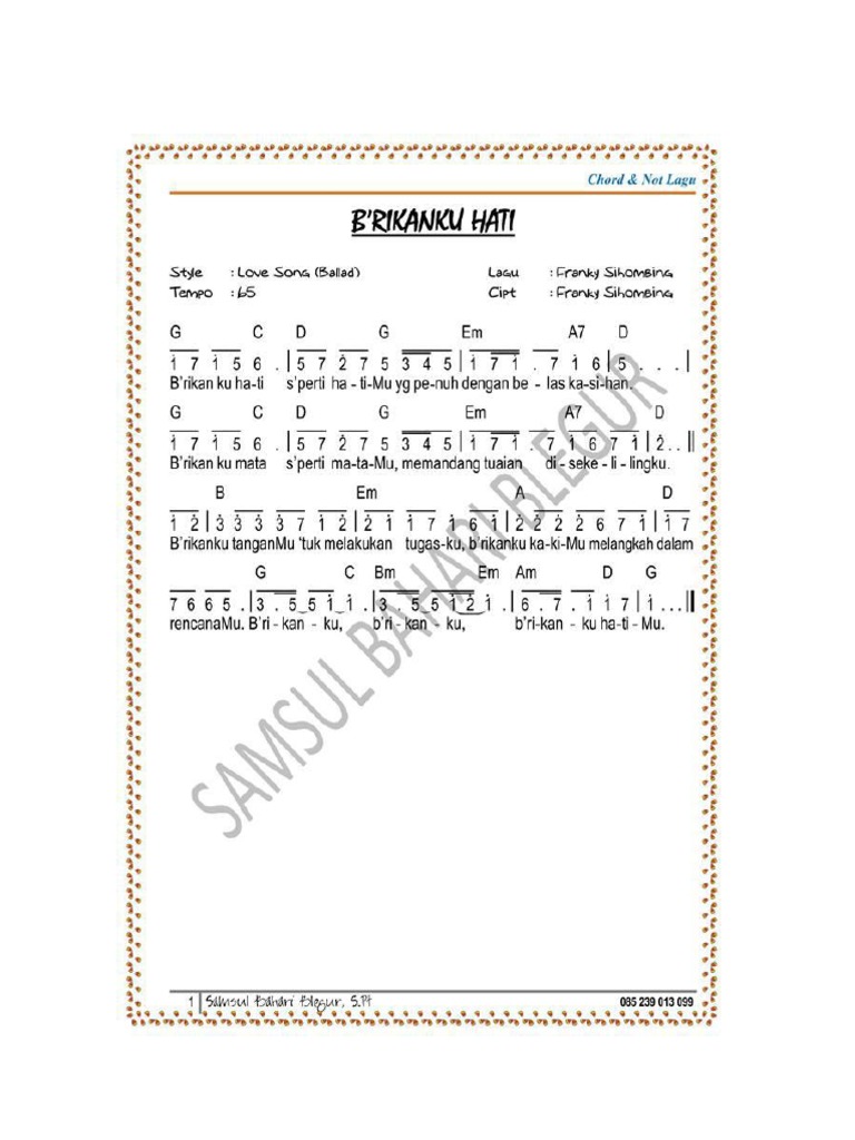 Not Angka Lirik Dan Chord Partitur Not Angka Lagu Hidup Ini
