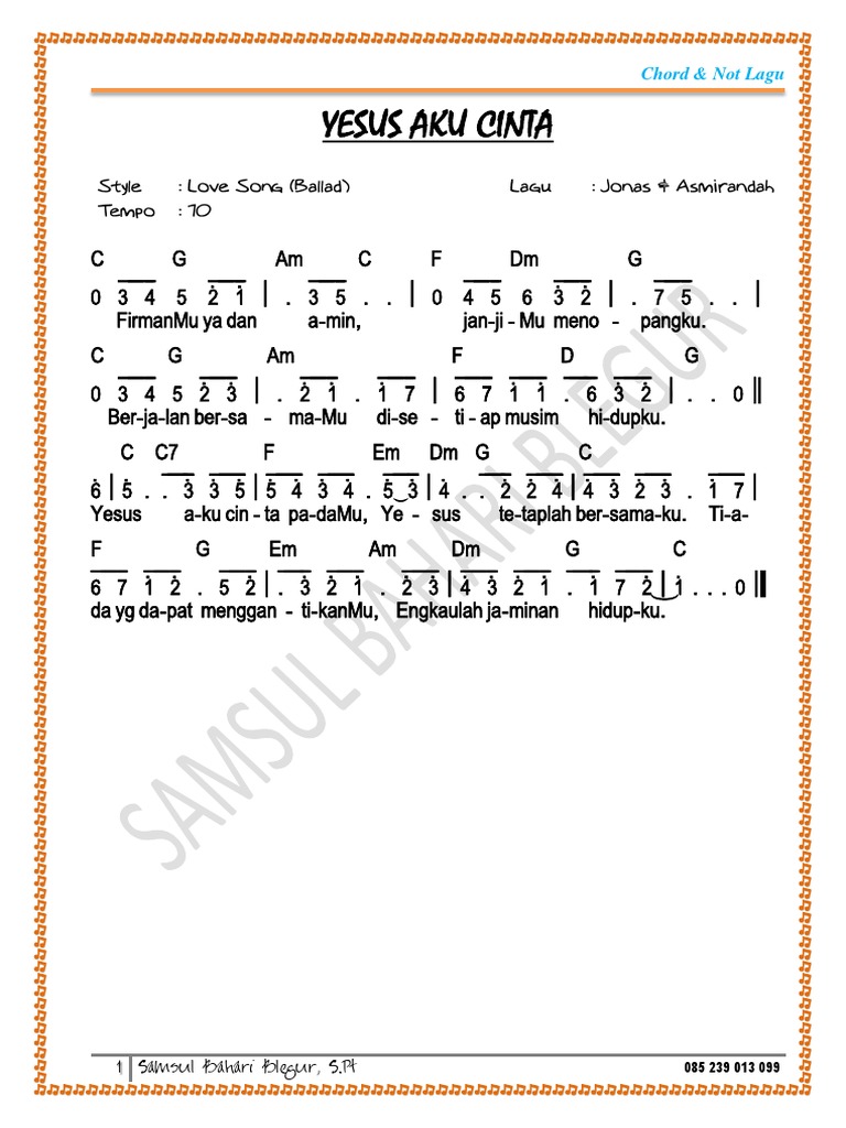 Partitur Not Angka Chord Dan Not Angka Lagu Bapa Yang