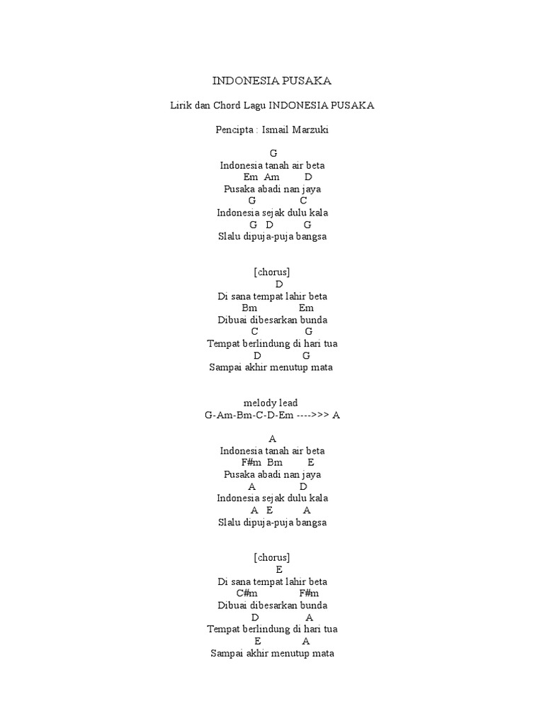 Chord Gitar Indonesiapusaka Lagu Wajib Nasional Kumpulan