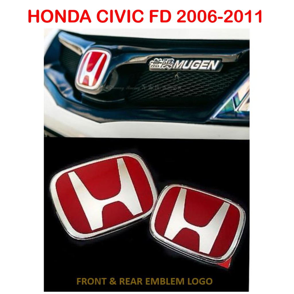 Honda Civic Fd Front And Back Red H Emblem Badge Logo 1 Pair