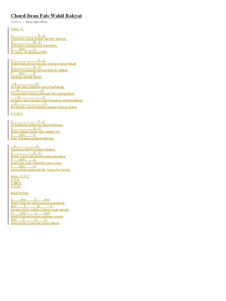 Chord Lagu Iwan F Chord Wakil Rakyat Wattpad