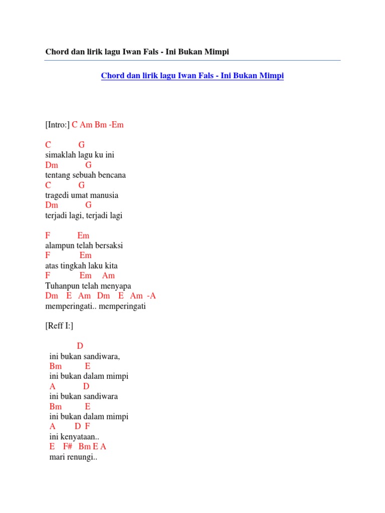 Chord Dan Lirik Lagu Iwan Fals Ini Bukan Mimpi